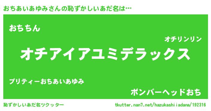 | ヘコむあだ名 | 『おちあいあゆみ(爆)』『おちお』 |