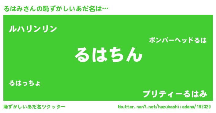 | ヘコむあだ名 | 『るはみ(苦笑)』『るはお』『豆乳』 |