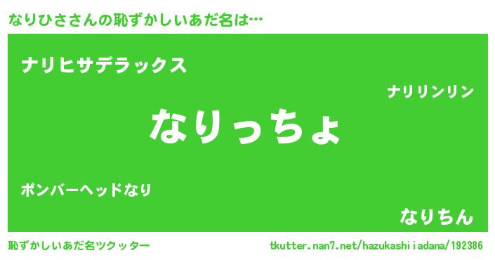 | 意味不明あだ名 | 『なりひさフォーエバー』『自称なりひさ』 |