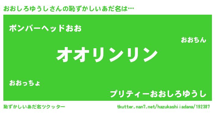 | 欧米人風あだ名 | 『ウサインおおしろゆうし』 |