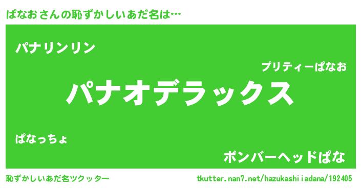 | 男性向けラノベタイトル風あだ名 | 『魔法科高校のぱなお』『緋弾のパナオ』 |