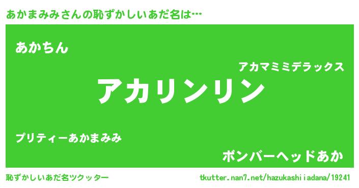 | 意味不明あだ名 | 『とにかく怪しいあかまみみ』 |