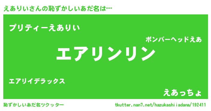 | 女子向けラノベタイトル風あだ名 | 『えありいは平凡を望む』 |
