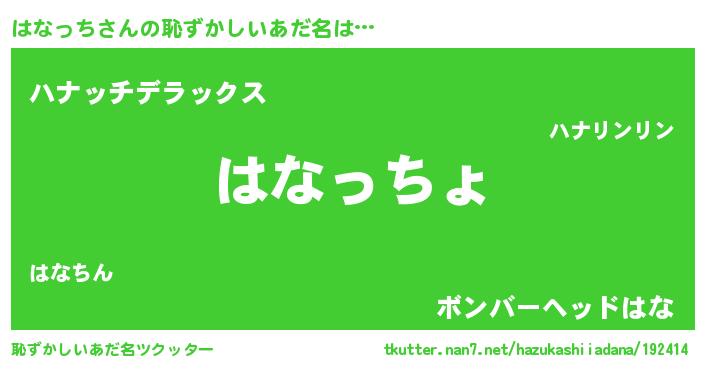 | 欧米人風あだ名 | 『はなっち・ステッグマイヤー』 |