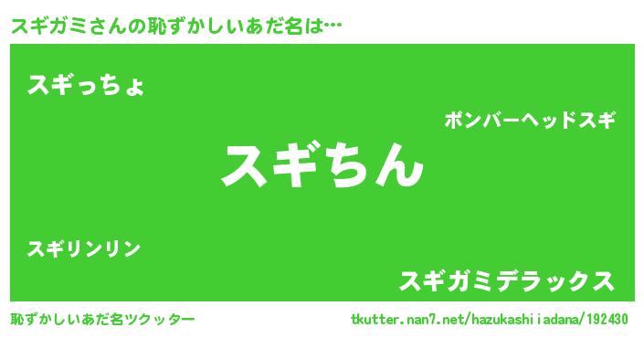 | 意味不明あだ名 | 『永久保存スギガミ』『自称スギガミ』 |