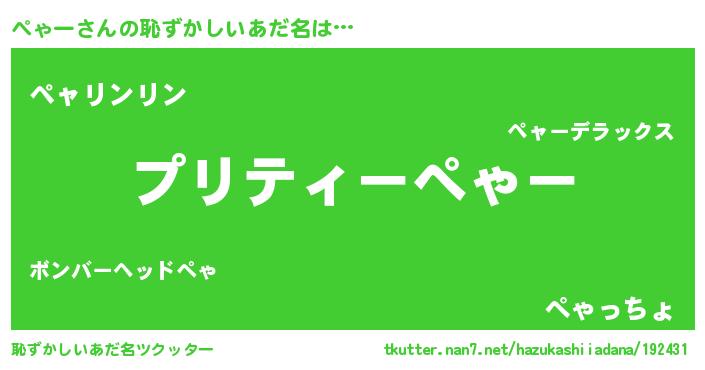 | ヒーロー風カッコイイあだ名 | 『スーパーペャー』『魔戒騎士ペャ』 |