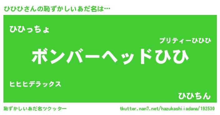 | 可愛いあだ名 | 『ひひちゅっちゅ』『ひひちー』 |