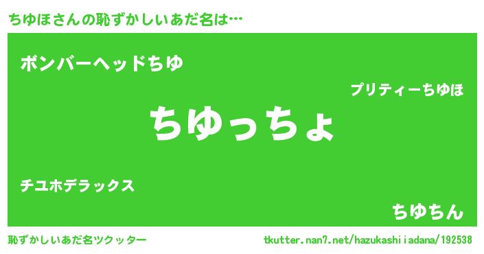 | 意味不明あだ名 | 『ちゆほフォーエバー』『永久保存ちゆほ』 |