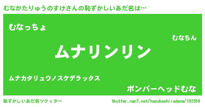 | 欧米人風あだ名 | 『ウサインむなかたりゅうのすけ』 |