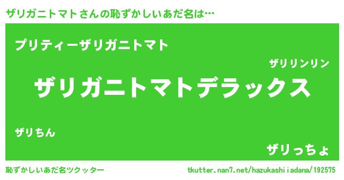 | 男性向けラノベタイトル風あだ名 | 『Re:ザリガニトマトから始める異世界生活』 |