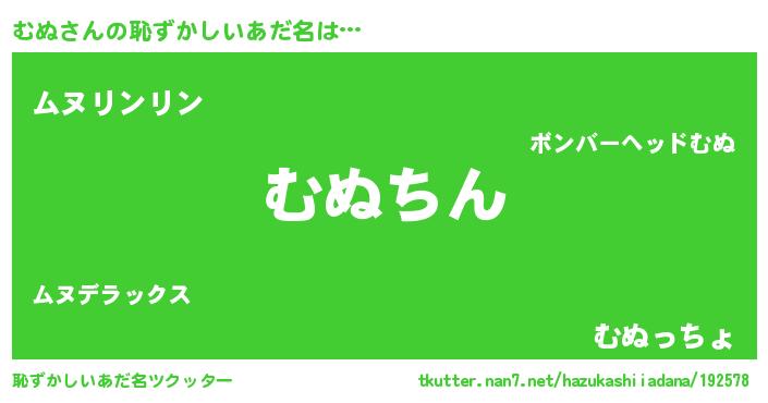 | ヘコむあだ名 | 『むぬ(震え声)』『むぬ太郎』 |