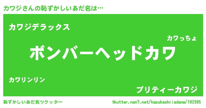 | ヒーロー風カッコイイあだ名 | 『慈愛の使者カワジ』『最強戦士カワジ』 |