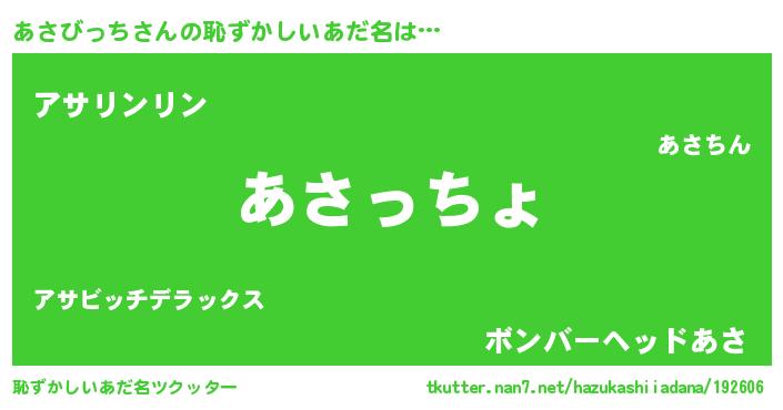 | 意味不明あだ名 | 『あさびっちフォーエバー』 |