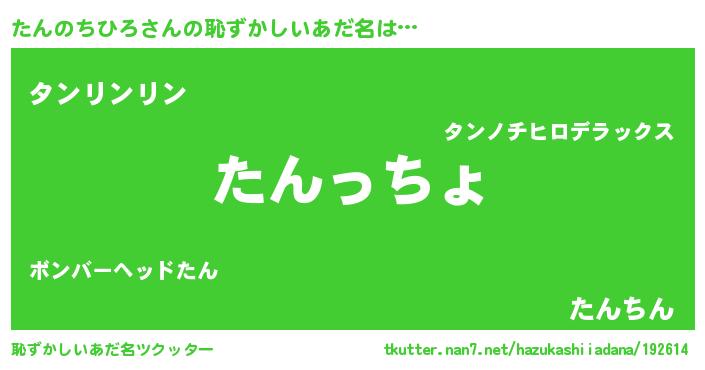 | 意味不明あだ名 | 『住所不定無職たんのちひろ(68歳)』 |
