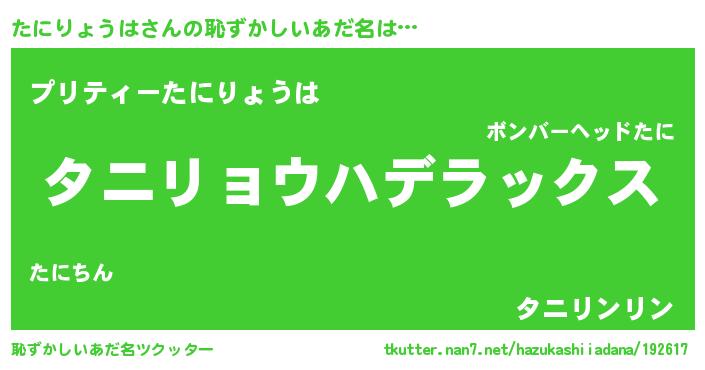 | 意味不明あだ名 | 『住所不定無職たにりょうは(89歳)』 |