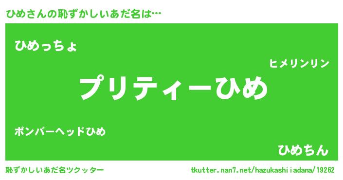 意味不明あだ名 | 『ペロリンひめ』『ひめフォーエバー』 |