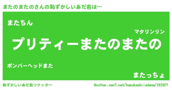 | 男性向けラノベタイトル風あだ名 | 『マタノマタノスレイヤー』 |