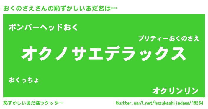 | ヒーロー風カッコイイあだ名 | 『仮面オクダー』『超時空戦士オクノサエ』 |