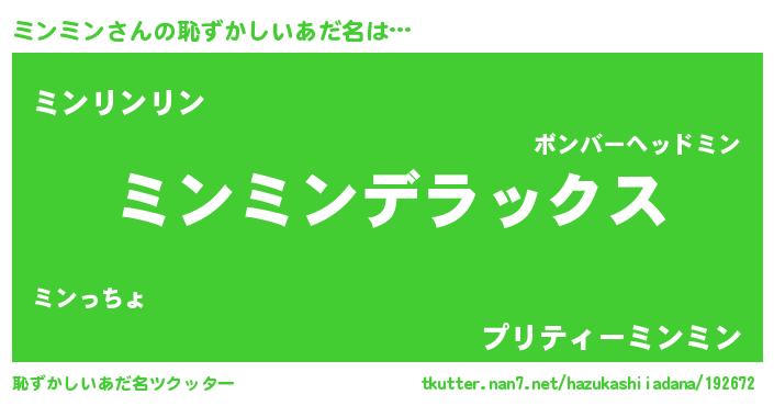 | ヘコむあだ名 | 『ミンっぺ』『ミンにゅー』 |