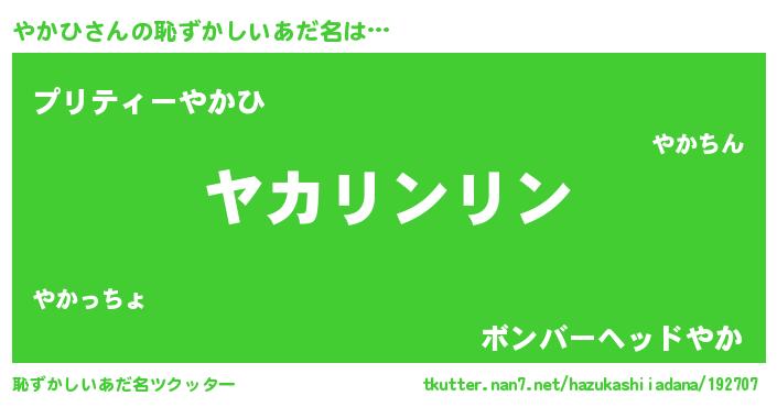 | ヒーロー風カッコイイあだ名 | 『暗黒騎士ヤカ』『スーパーヤカヒ』 |