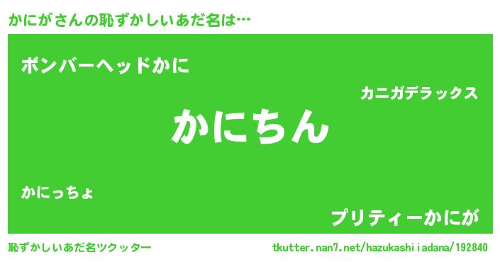 | 意味不明あだ名 | 『永久保存かにが』『ペロリンかにが』 |