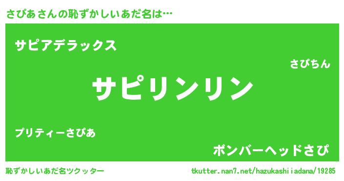 | ヘコむあだ名 | 『さぴを』『さぴあ(小並感)』 |