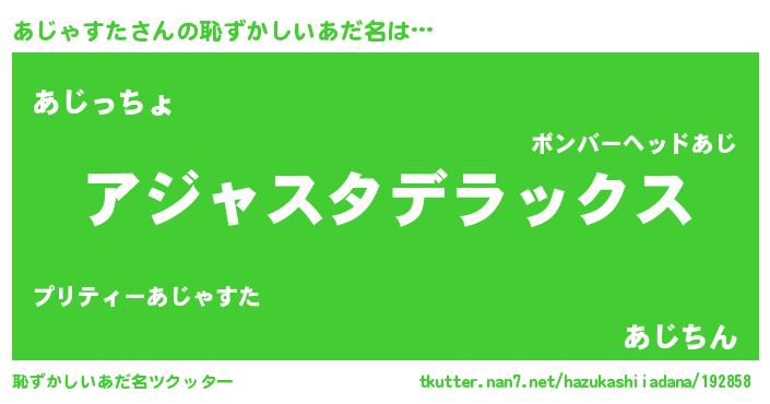 | 意味不明あだ名 | 『自称あじゃすた』『永久保存あじゃすた』 |