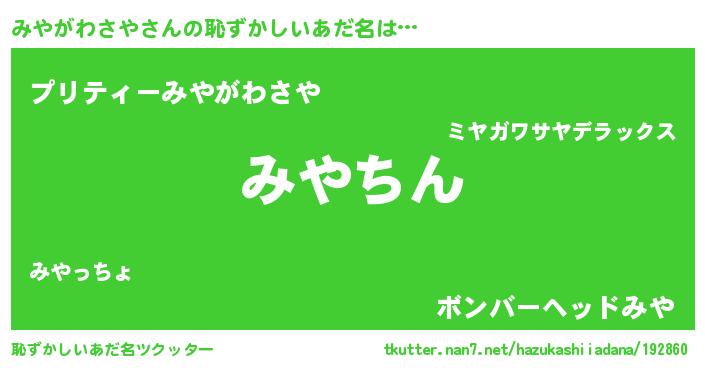 | 意味不明あだ名 | 『永久保存みやがわさや』 |