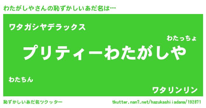 | 意味不明あだ名 | 『ペロリンわたがしや』『自称わたがしや』 |