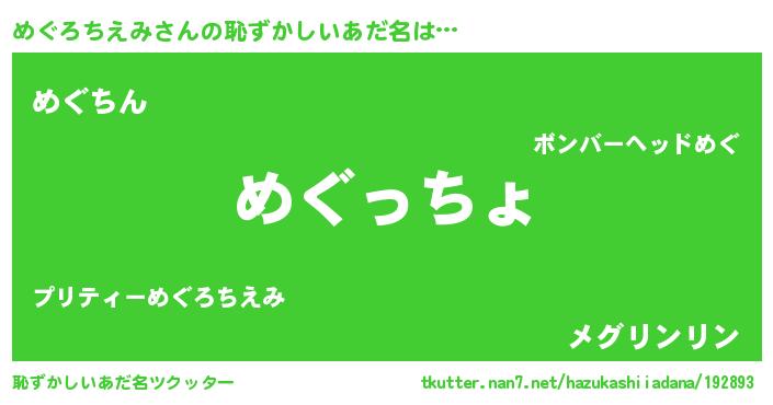 | 欧米人風あだ名 | 『めぐろちえみクリステル』 |