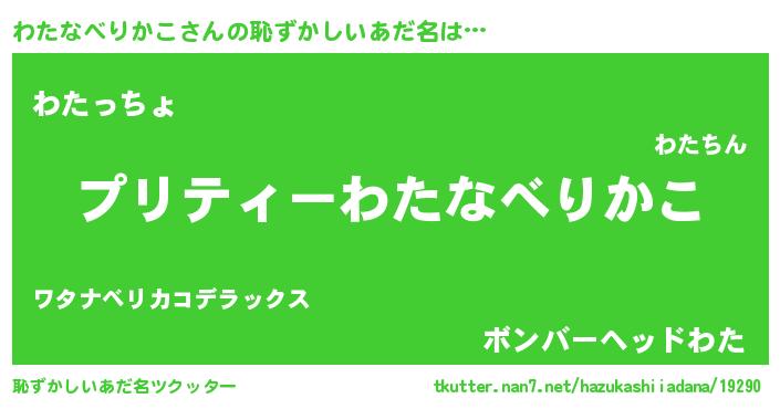 | ヘコむあだ名 | 『わたふぇ~』『豆乳』『わたぷりん』 |