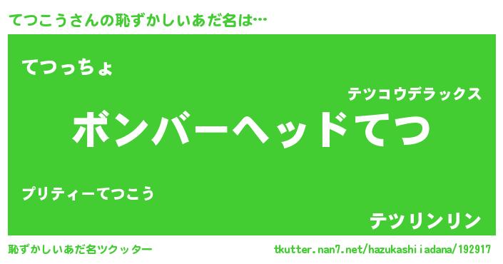 | ヘコむあだ名 | 『つくし』『てつお』『てつっふぃ~』 |
