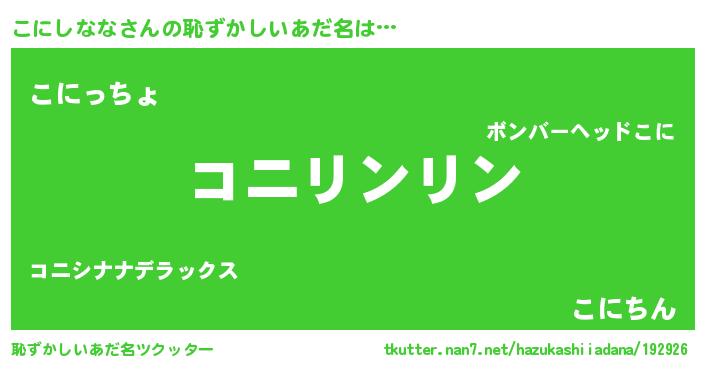 | 欧米人風あだ名 | 『ウサインこにしなな』 |