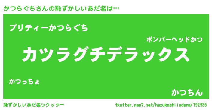 | ヒーロー風カッコイイあだ名 | 『仮面カツダー』『スーパーカツラグチ』 |