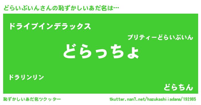 | 意味不明あだ名 | 『どらいぶいんフォーエバー』 |