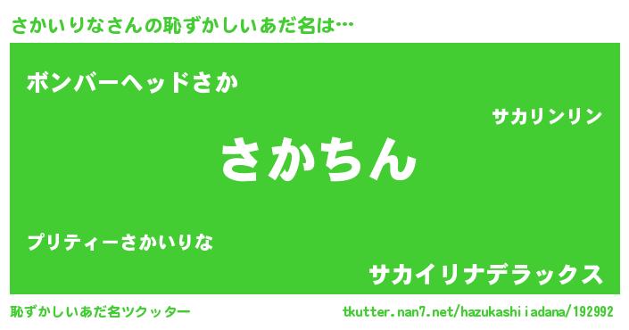 | ヘコむあだ名 | 『さかいりな(笑)』『さかっ子』 |