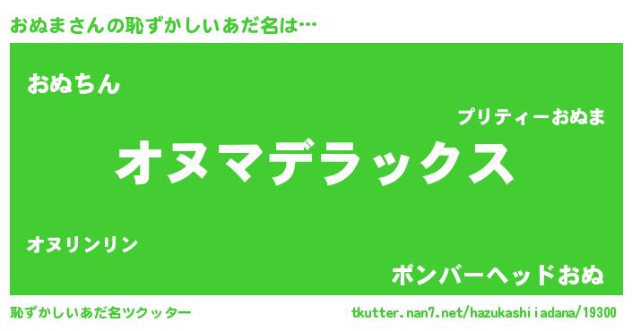 | 男性向けラノベタイトル風あだ名 | 『おぬま~年齢イコール彼女いない歴の魔法使い~』 |
