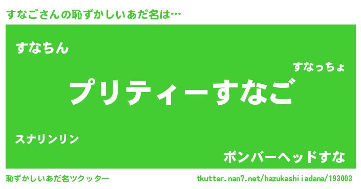 | ヘコむあだ名 | 『すなふぇ~』『すなご(苦笑)』 |