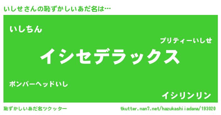 | 意味不明あだ名 | 『自称いしせ』『しいたけ科いしせ属』 |