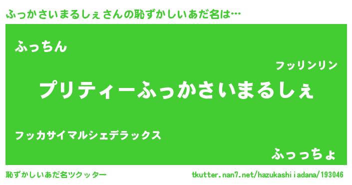 | ヘコむあだ名 | 『ふっにー』『ふっかさいまるしぇ(震え声)』 |