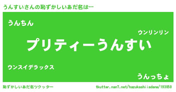 | 男性向けラノベタイトル風あだ名 | 『うんすいの憂鬱』『緋弾のウンスイ』 |