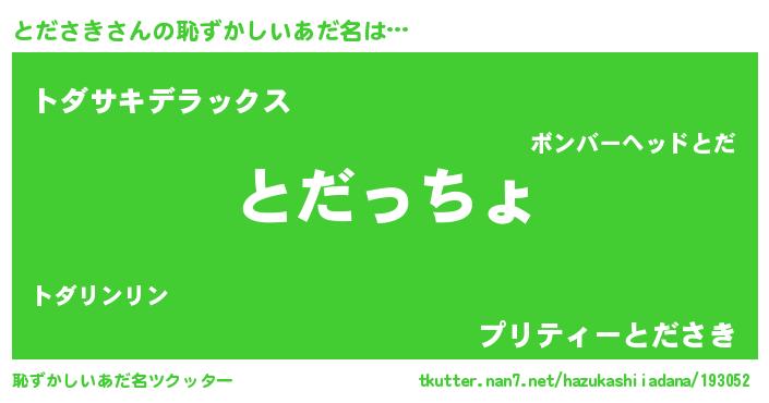 | ヘコむあだ名 | 『豆乳』『とだにゅー』『とだを』 |