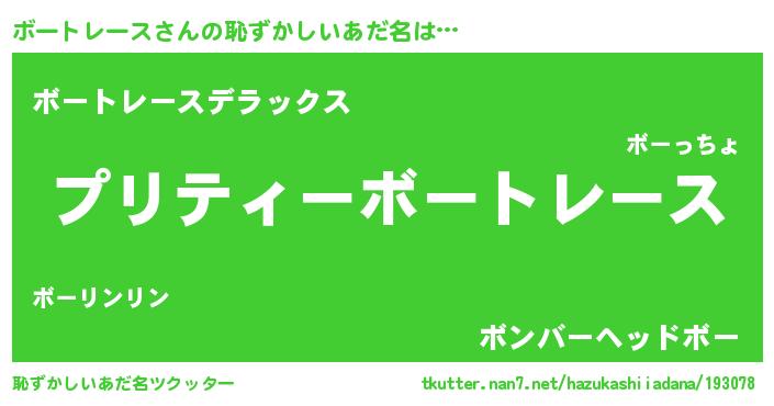| 男性向けラノベタイトル風あだ名 | 『ボートレースの憂鬱』 |