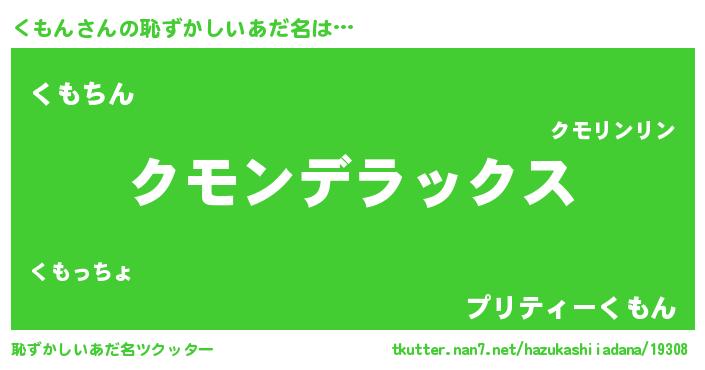 | ヘコむあだ名 | 『くもん(苦笑)』『くもにー』 |