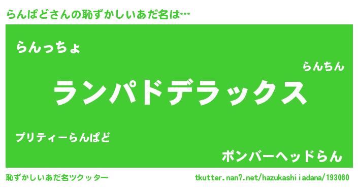 | 意味不明あだ名 | 『自称らんぱど』『らんぱどフォーエバー』 |
