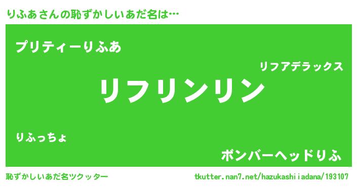 | 意味不明あだ名 | 『住所不定無職りふあ(12歳)』 |