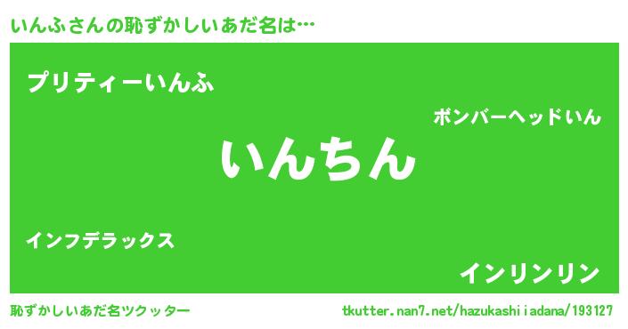 | 料理風あだ名 | 『いんふごはん』 |