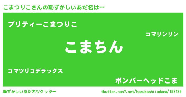 | 料理風あだ名 | 『こまつりこごはん』 |