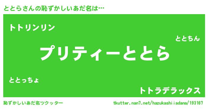 | ヘコむあだ名 | 『ととにゅー』『ととっ子』 |