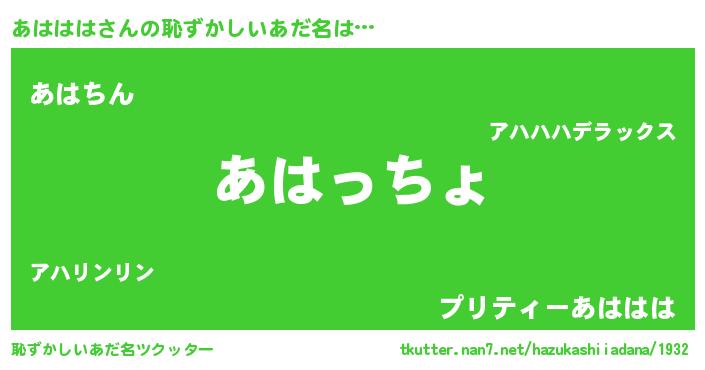 | ヘコむあだ名 | 『豆乳』『あははは(笑)』『あはっぺ』 |